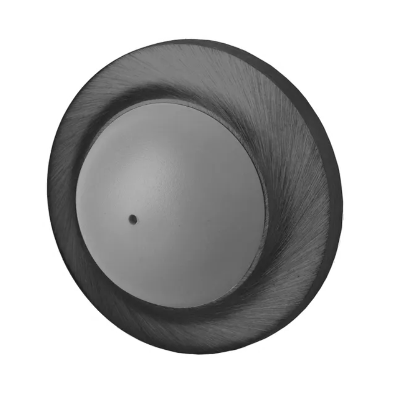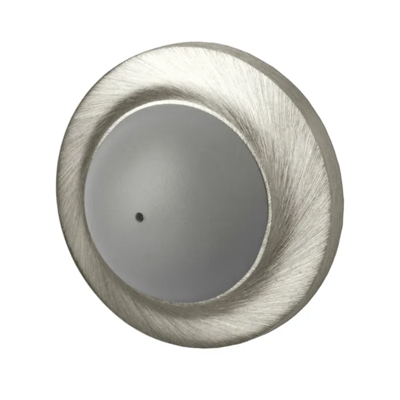 Concealed mounting, convex bumper. Back plate prevents damage to wall.