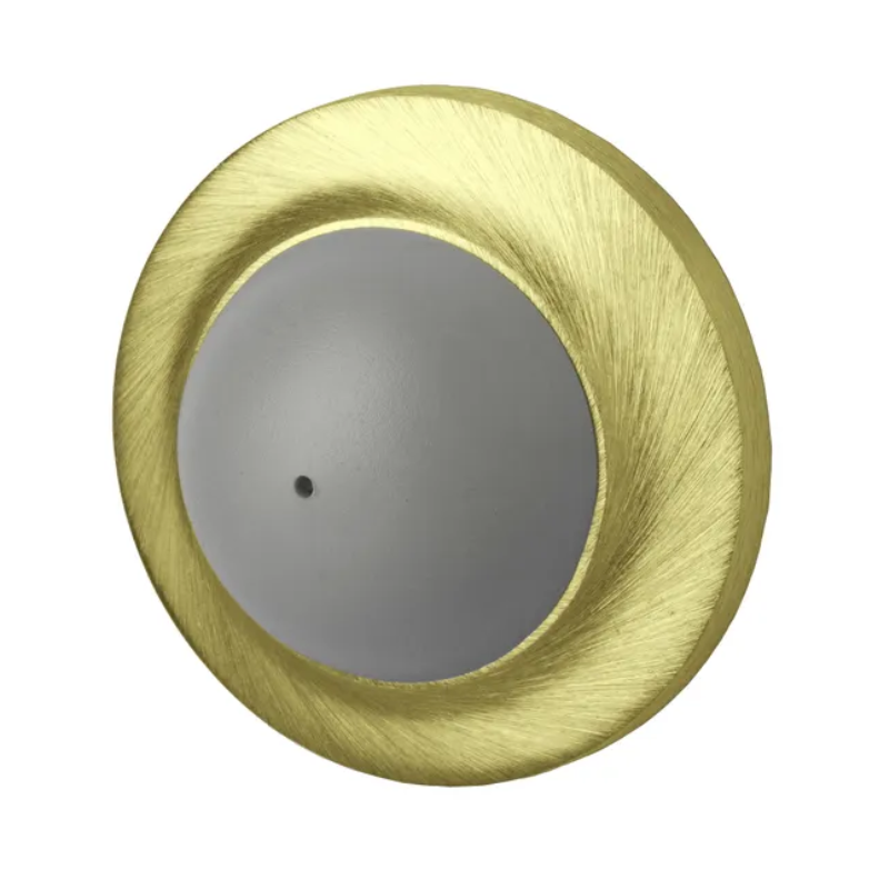 The Rockwood 400 Convex Wall Stop is crafted from solid cast brass and features a concealed mounting design. It extends 1 inch from the wall and includes a #6 x 1 1/2" flat head sheet metal screw along with a plastic toggle for secure installation.