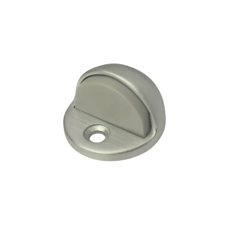 The Rockwood 440 Low Dome Floor Door Stop features a compact height of 1 1/8 inches, designed to effectively prevent door damage by limiting door movement. Crafted for durability, it comes with a #12 x 1 1/4" flat head wood screw and a plastic anchor, ensuring a secure and stable installation on various floor surfaces. Ideal for professional applications, this door stop delivers reliable performance with a low-profile design that blends seamlessly into any environment.