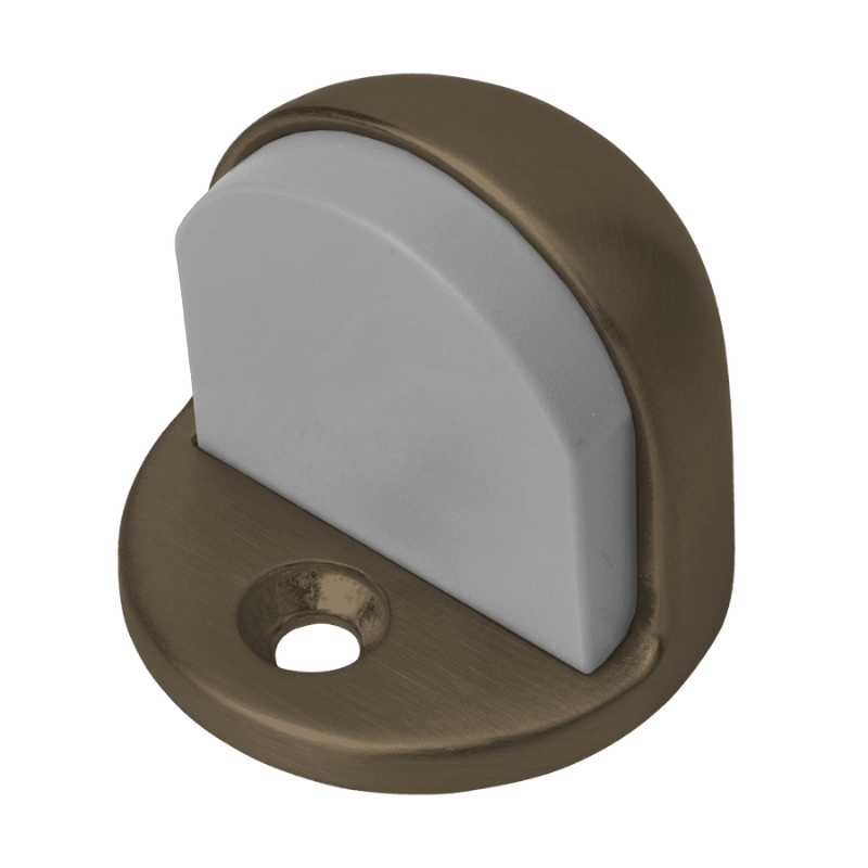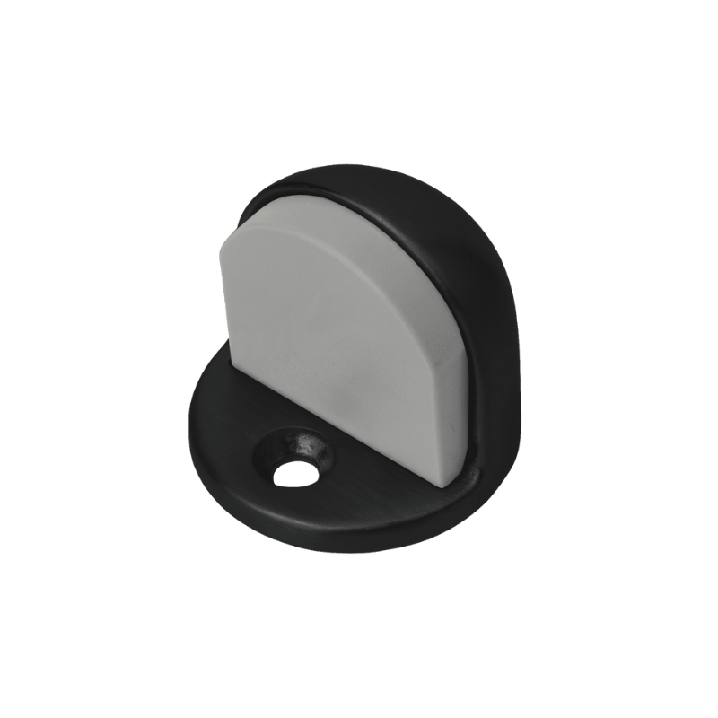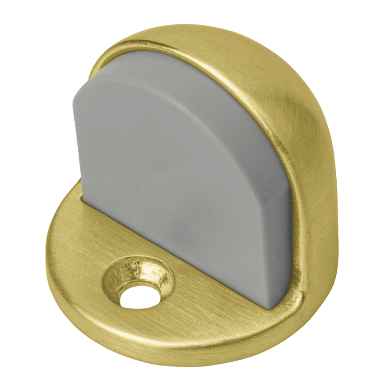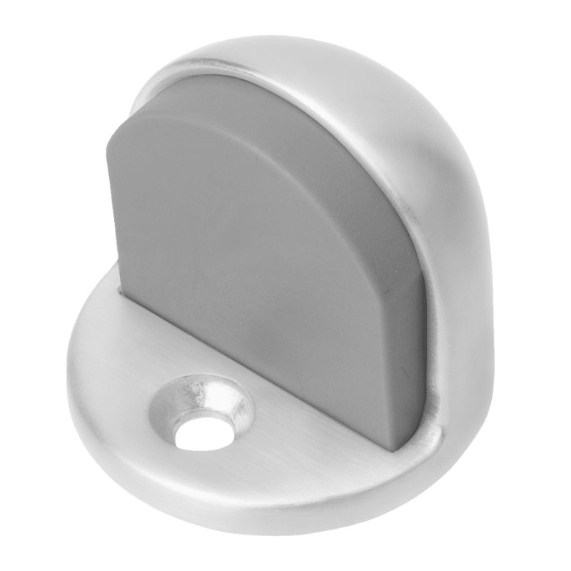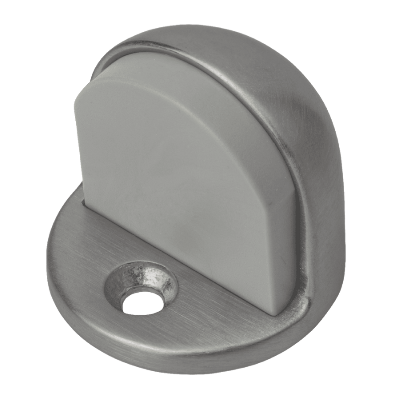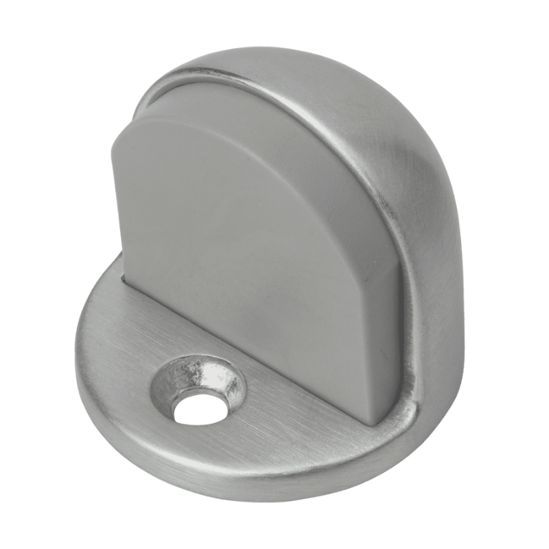 Low lip dome stop with the height of a high dome stop, eliminates the need to determine the requirement for traditional low or high dome stop - one stop for all applications. Integral cast pin for added strength. Universal screw pack included for all floor conditions.