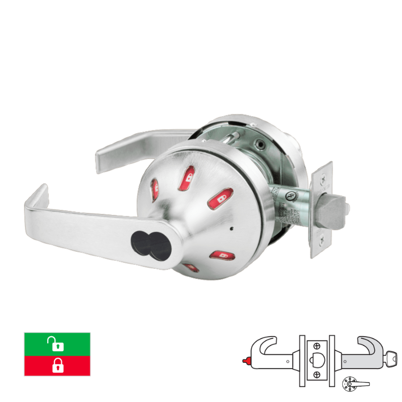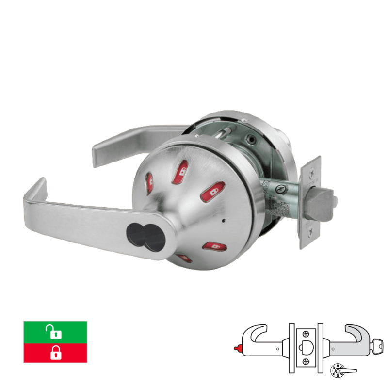 Sargent 60-V30-10XG05-VSLL Office Function Cylindrical Lock, "VSL" Rose, "L" Lever Design, Visual Indicator Trim Outside Only, Green/Red, 2 3/4 Backset, 4 7/8 Strike, LFIC, Less Core, Grade 1