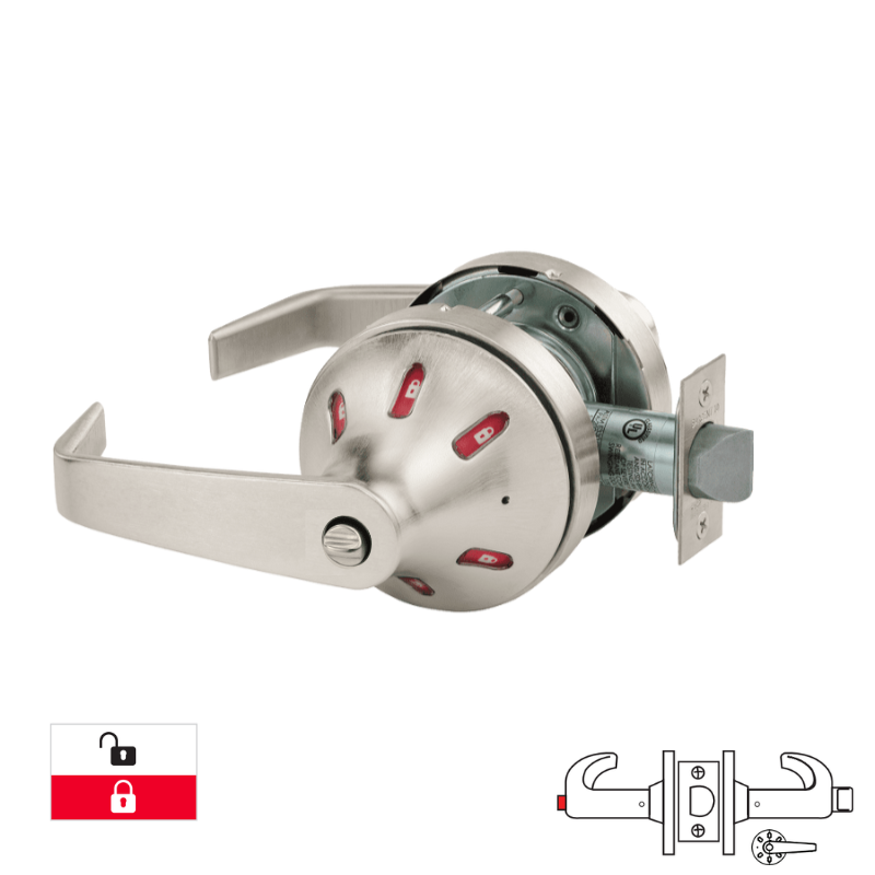 Sargent V60-10XU68-VSLL Hospital Privacy Function Cylindrical Lock, Visual Indicator Trim Outside Only, White/Red, Non-Keyed
